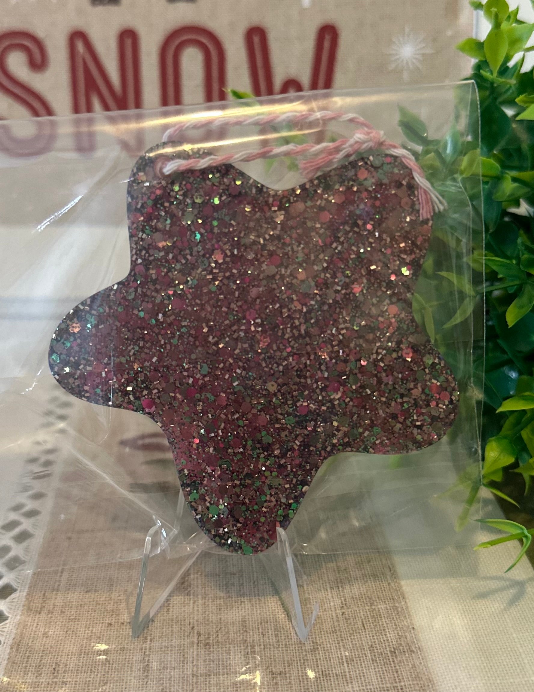 Double-sided. Pink and Sea Green glitter and solid pink with leaves sticker .