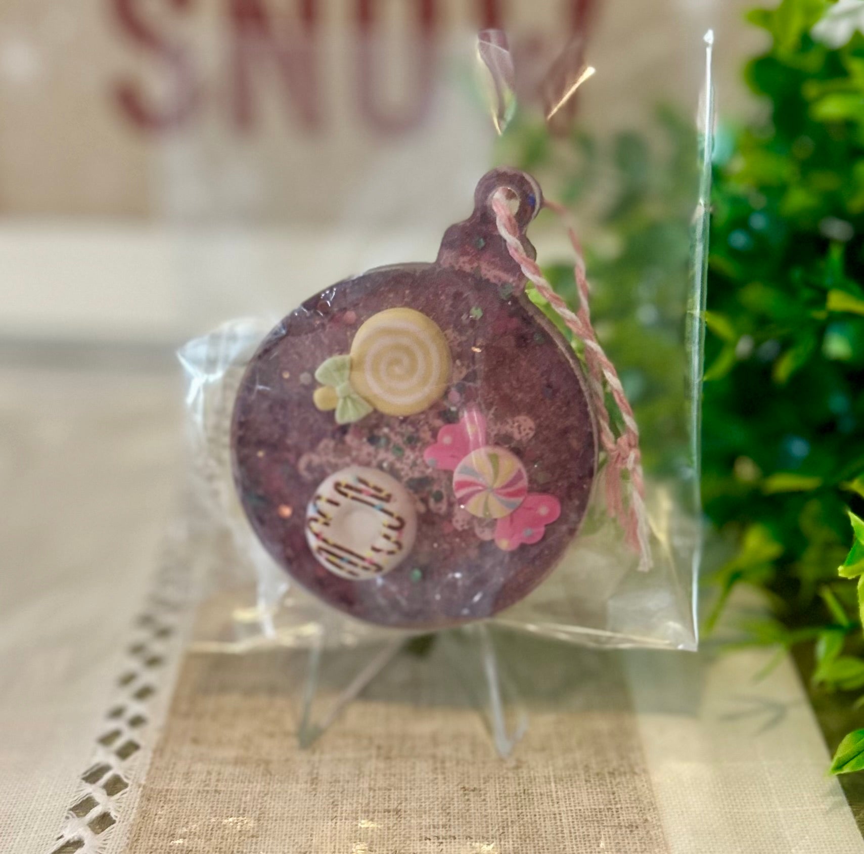 Double-sided. Pink and Sea Green glitter and candy charms .