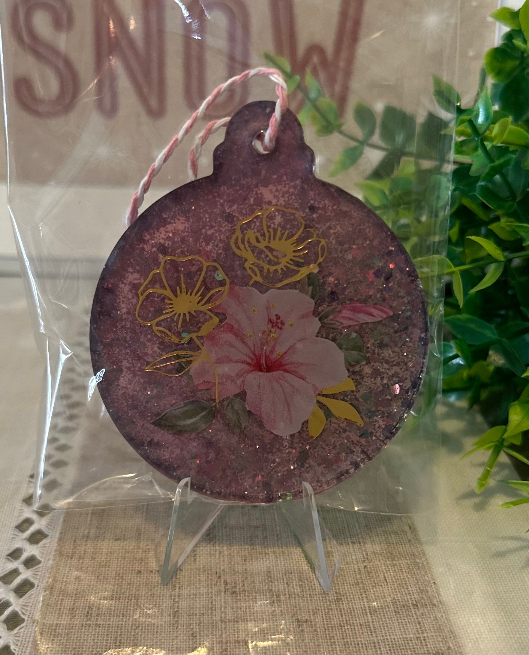 Double-sided. Pink and Sea Green glitter and flower sticker.